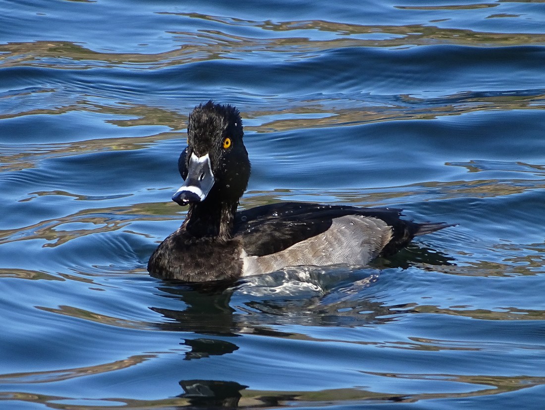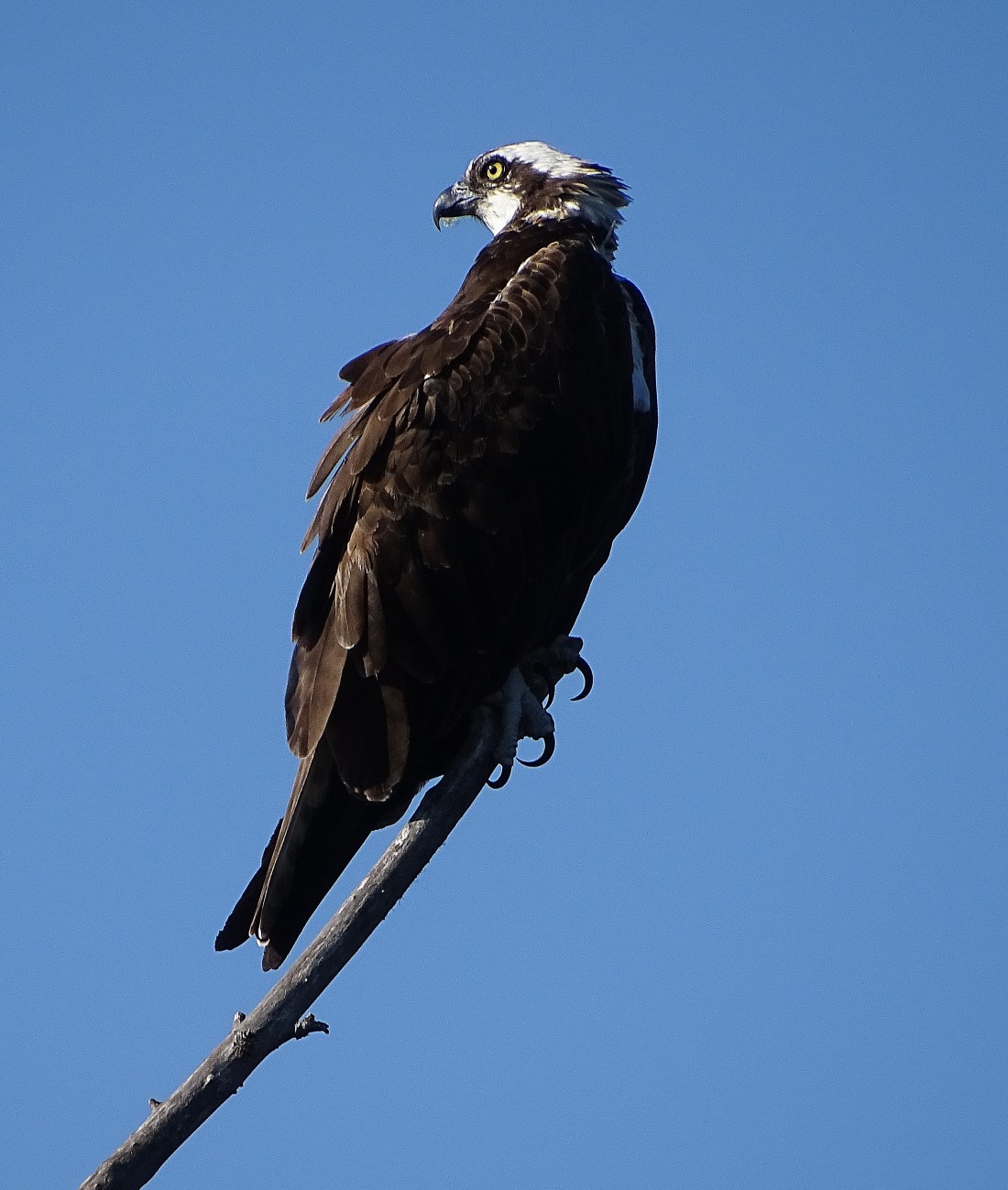 intently watching the lake for her next meal (despite the feather stuck on her beak.)