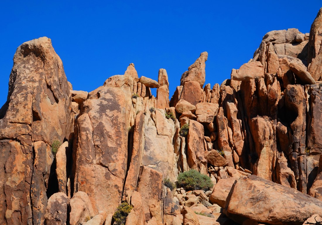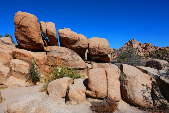 Joshua Tree National Park encompasses almost 800,000 acres and straddles both The Mojave and Colorado Deserts in Southern California. Joshua Trees are not trees at all, but a variety of Yucca, sculpted into bizarre shapes by desert winds. The eerie rock formations were formed eons ago by cooling lava, that cracked and split from fault uplifting, and eroded over time by wind, water and sand.