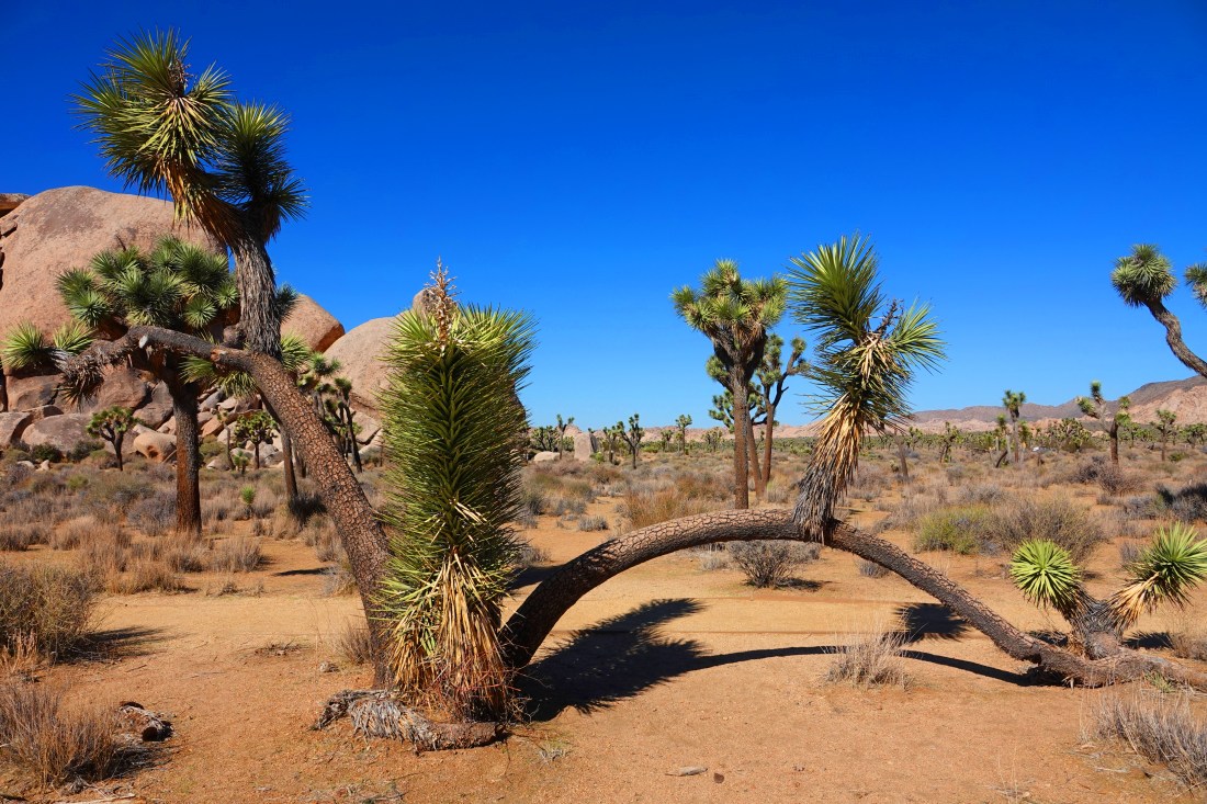 Joshua Trees twist in tortured poses.