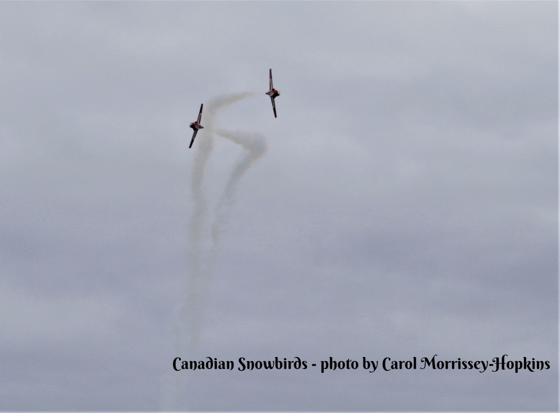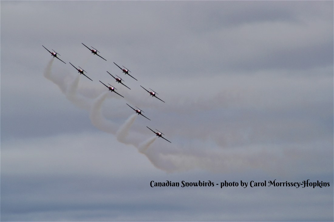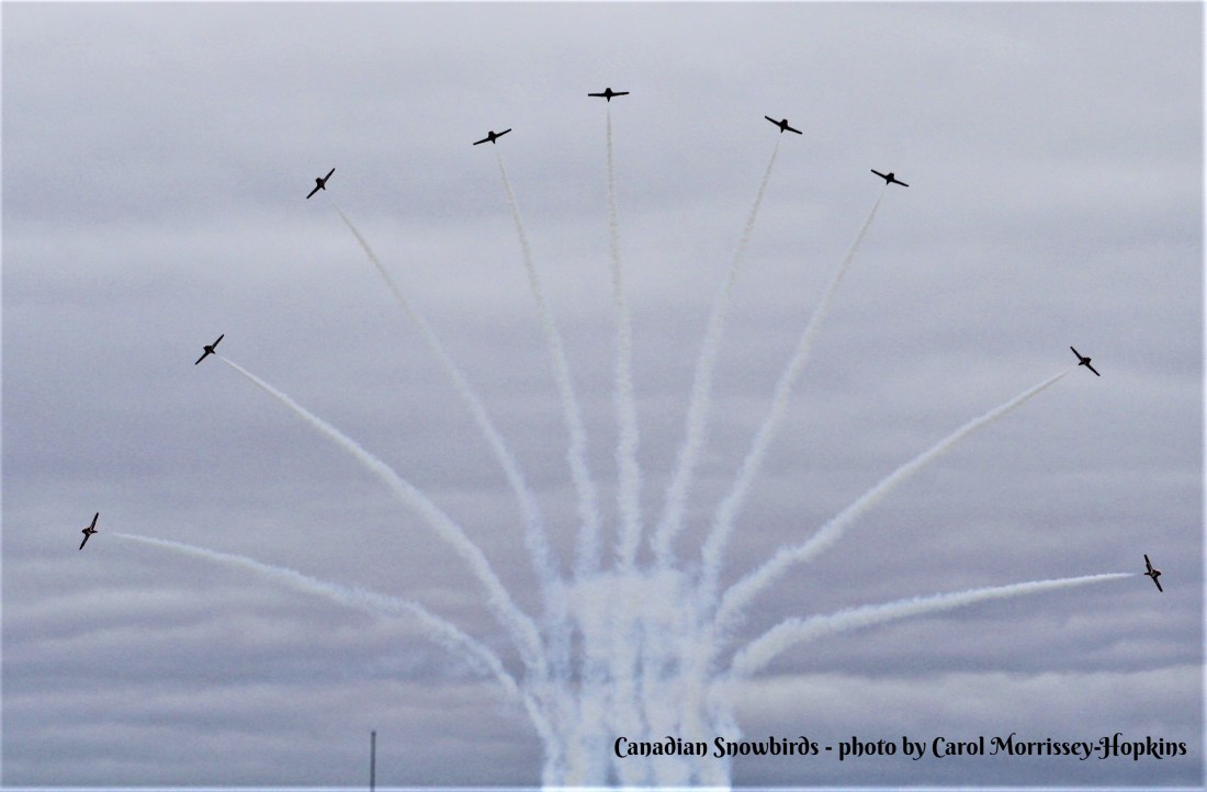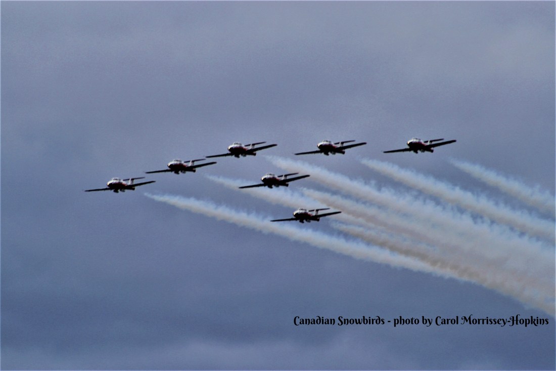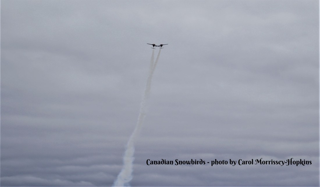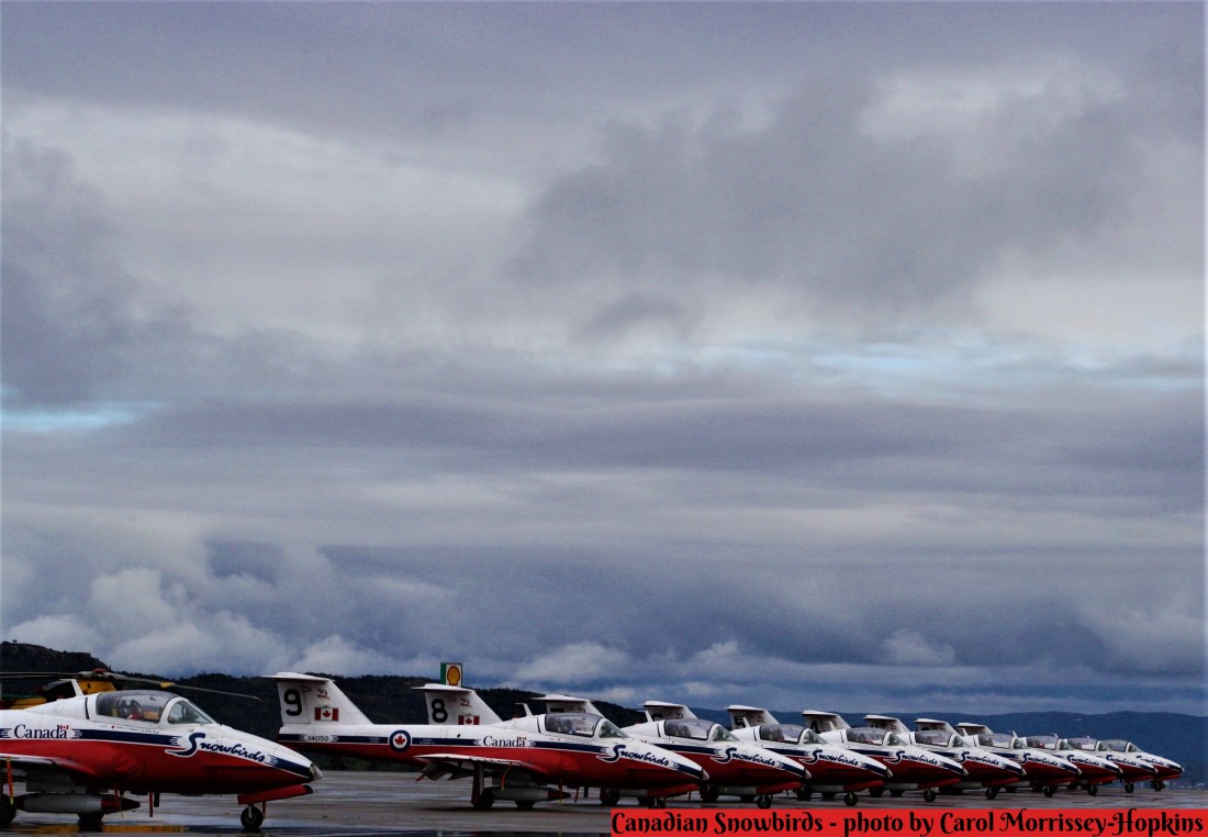 As many of you may know, I love to take photographs – it’s one of my favorite pastimes. A few years ago I was fortunate to see the Canadian Snowbirds put on a show in Stephenville, NL. It was a cold, rainy day in June, but the pilots did their utmost to make it a day for the crowds that came to see them. I thought you might like seeing a few of the photographs I managed to capture that day.