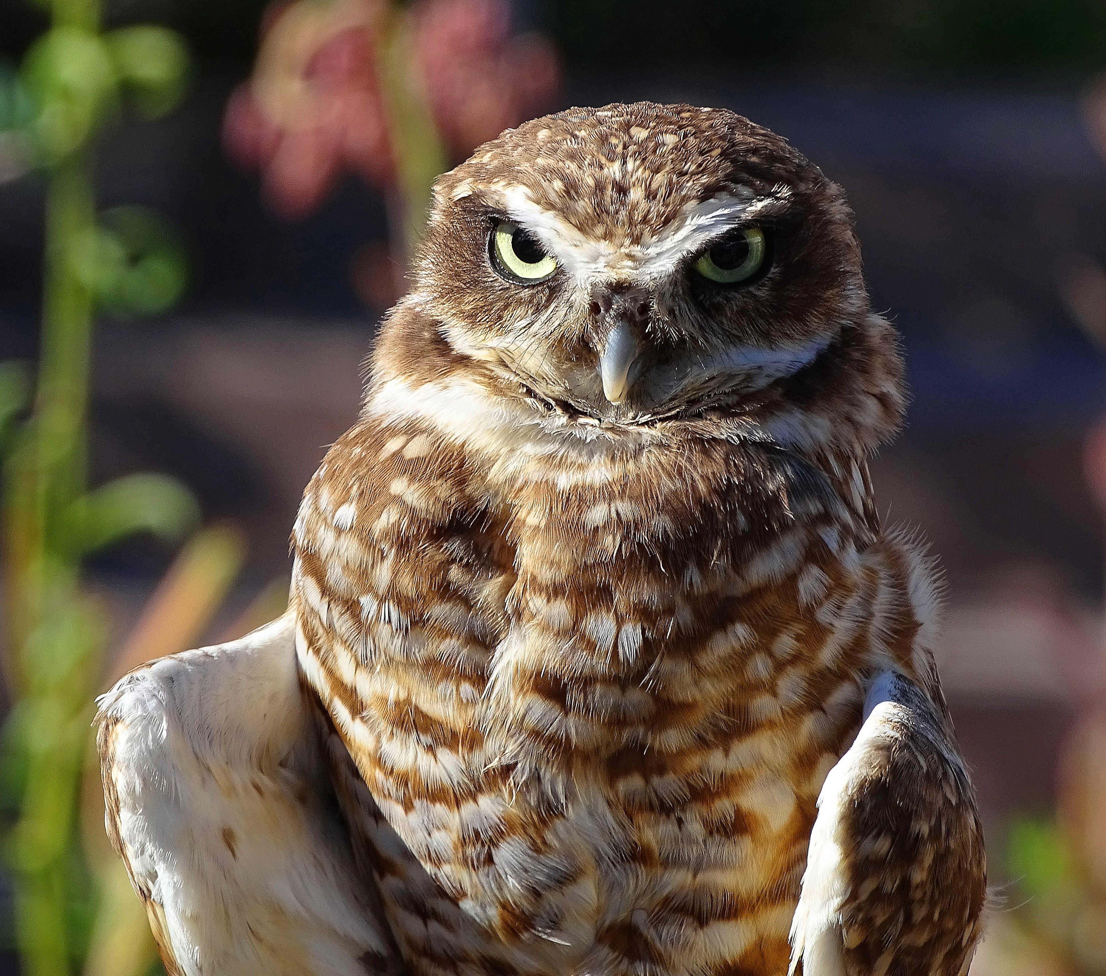 In the wild Burrowing Owls live mostly in squirrel and gopher burrows, often sharing space with their furry room mates.