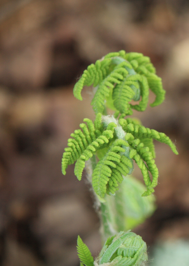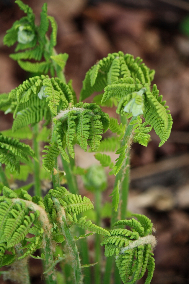 The unfurling of fern fiddleheads in spring is one of the things I look forward to every year. To me, each one is a work of art. Above is a lovely reddish-bronze Sensitive Fern (Onoclea sensibilis) named for its quick demise when touched by frost.