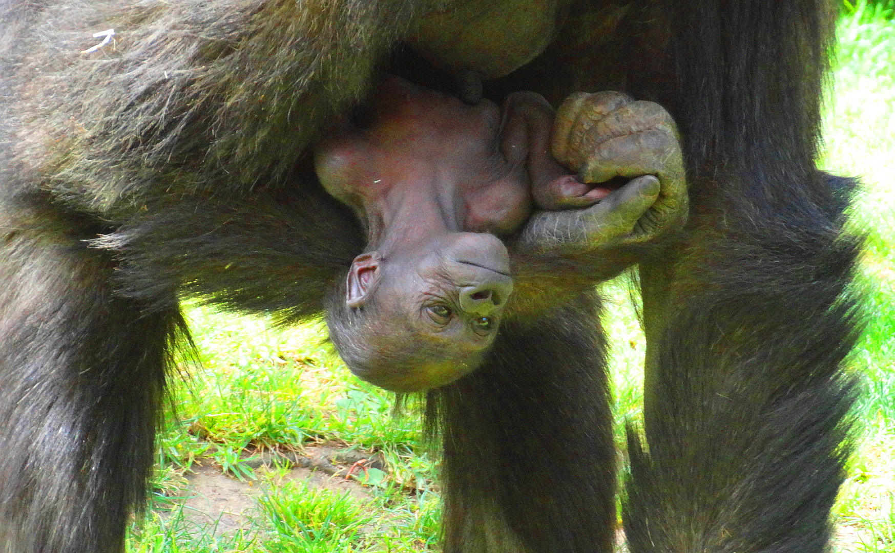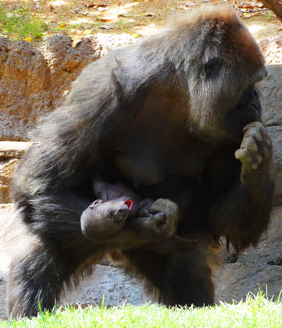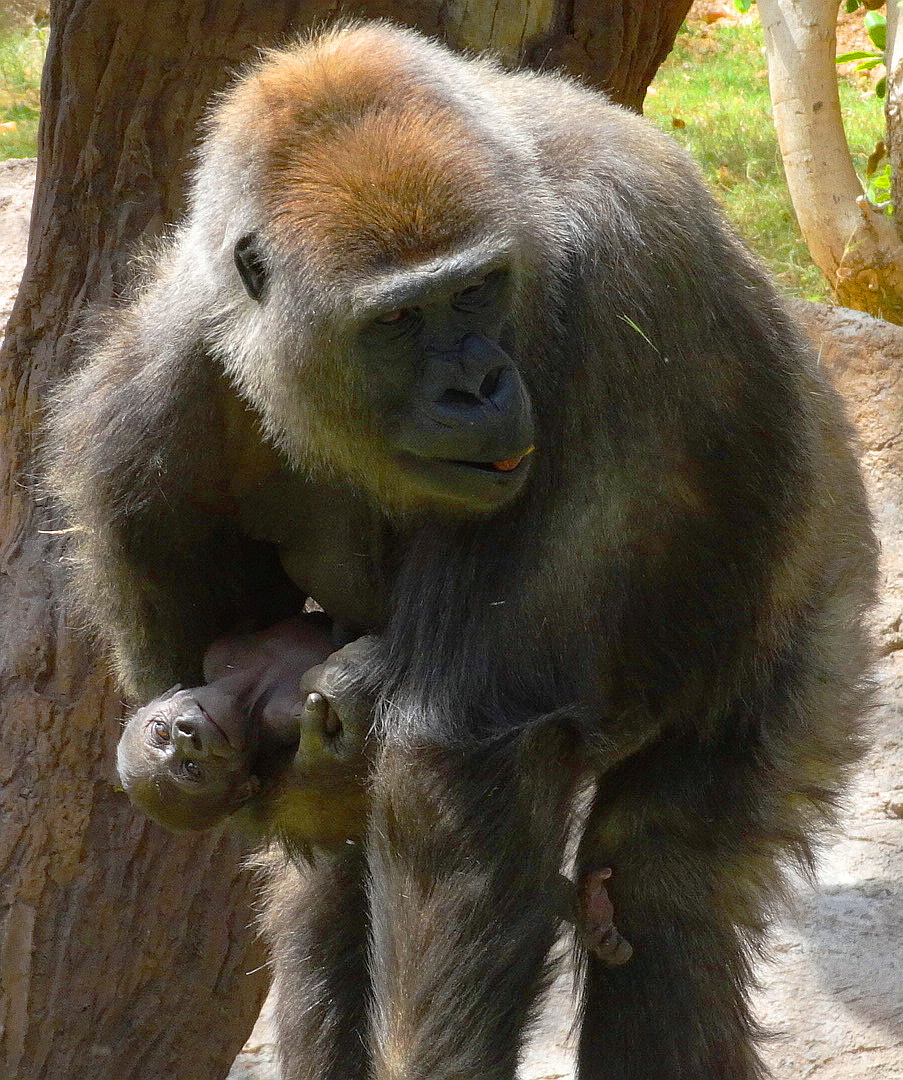 Imani is a 18 year old lowland gorilla at the San Diego Safari (Wild Animal) Park and this is her newborn baby delivered on March 12, 2014. (Please click to enlarge).