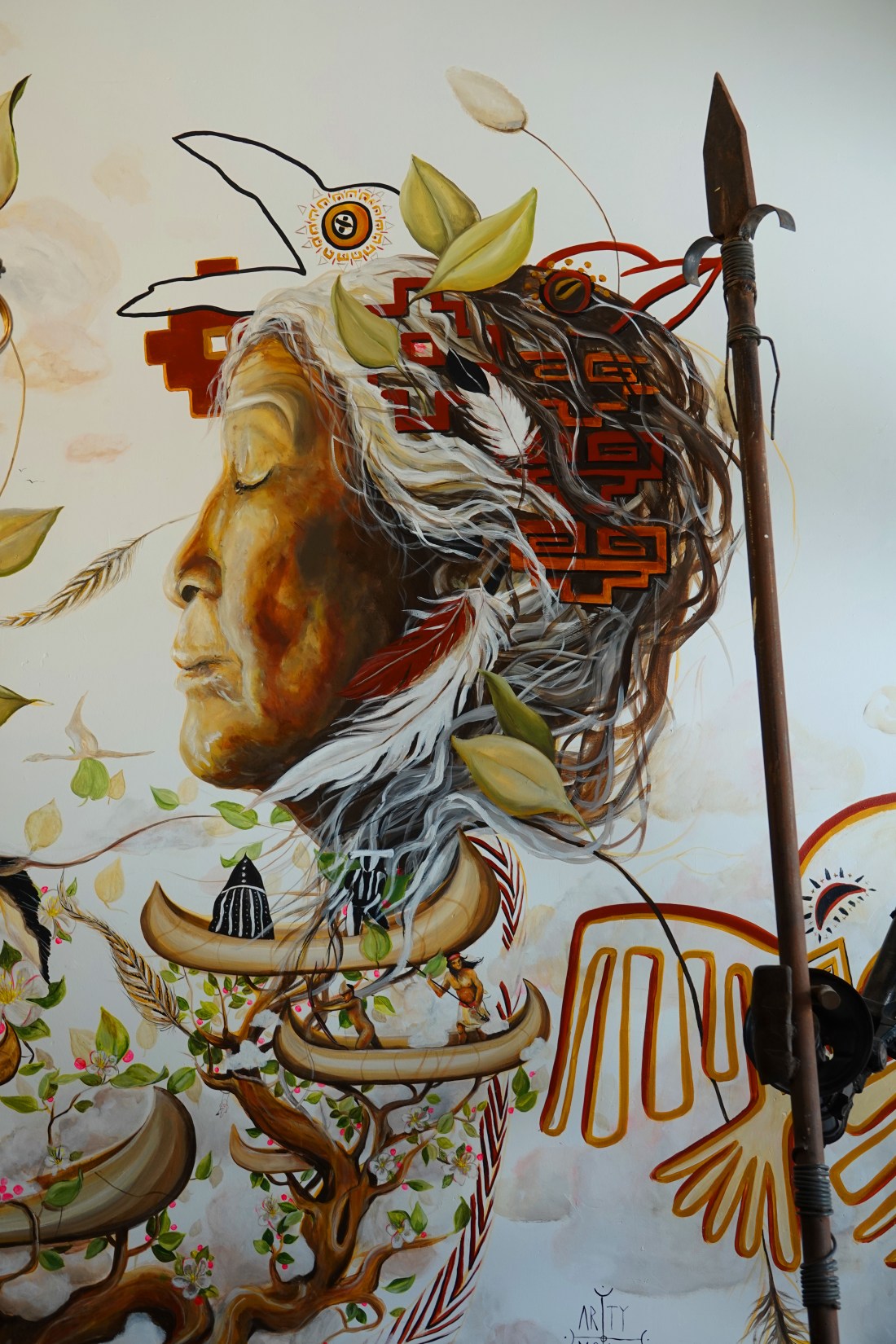 The waiter explained to me that the art in this restaurant was painted by two art students, one a French female whose mind boggling talent you are looking at now. (Please click to enlarge).