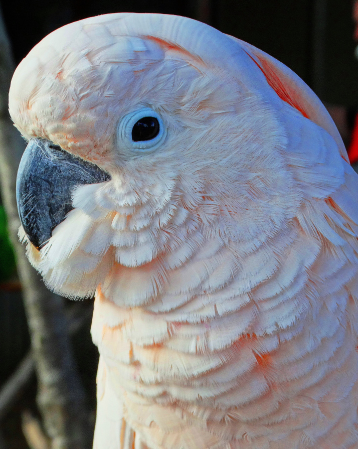 Pretty in Pink Moluccan Cockatoos are native to Indonesia.